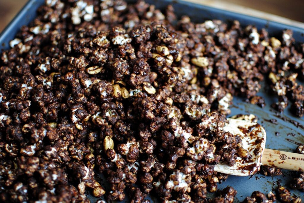 - Mix fast, coat evenly: Once the chocolate mixture is ready, move quickly. The caramelized chocolate thickens as it cools, so working fast ensures every kernel gets a nice, even coating.